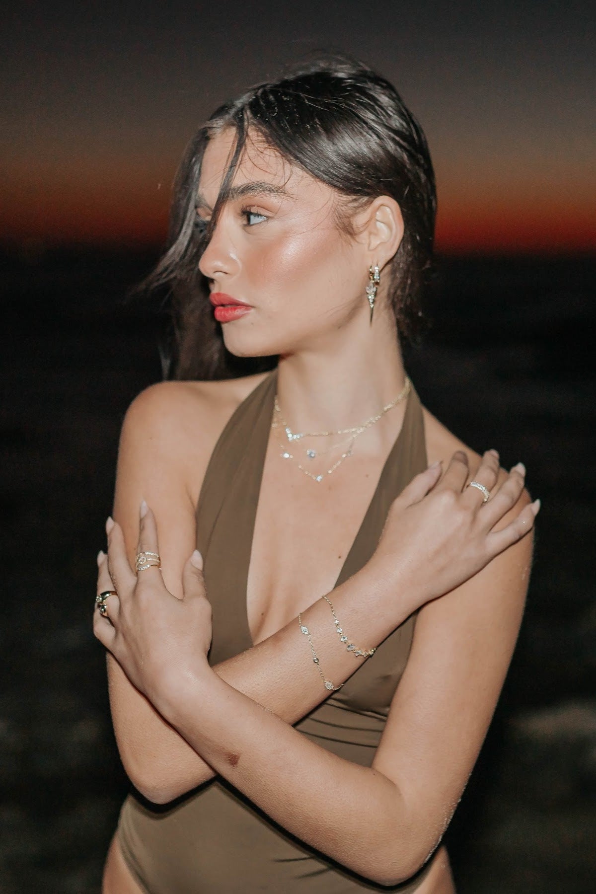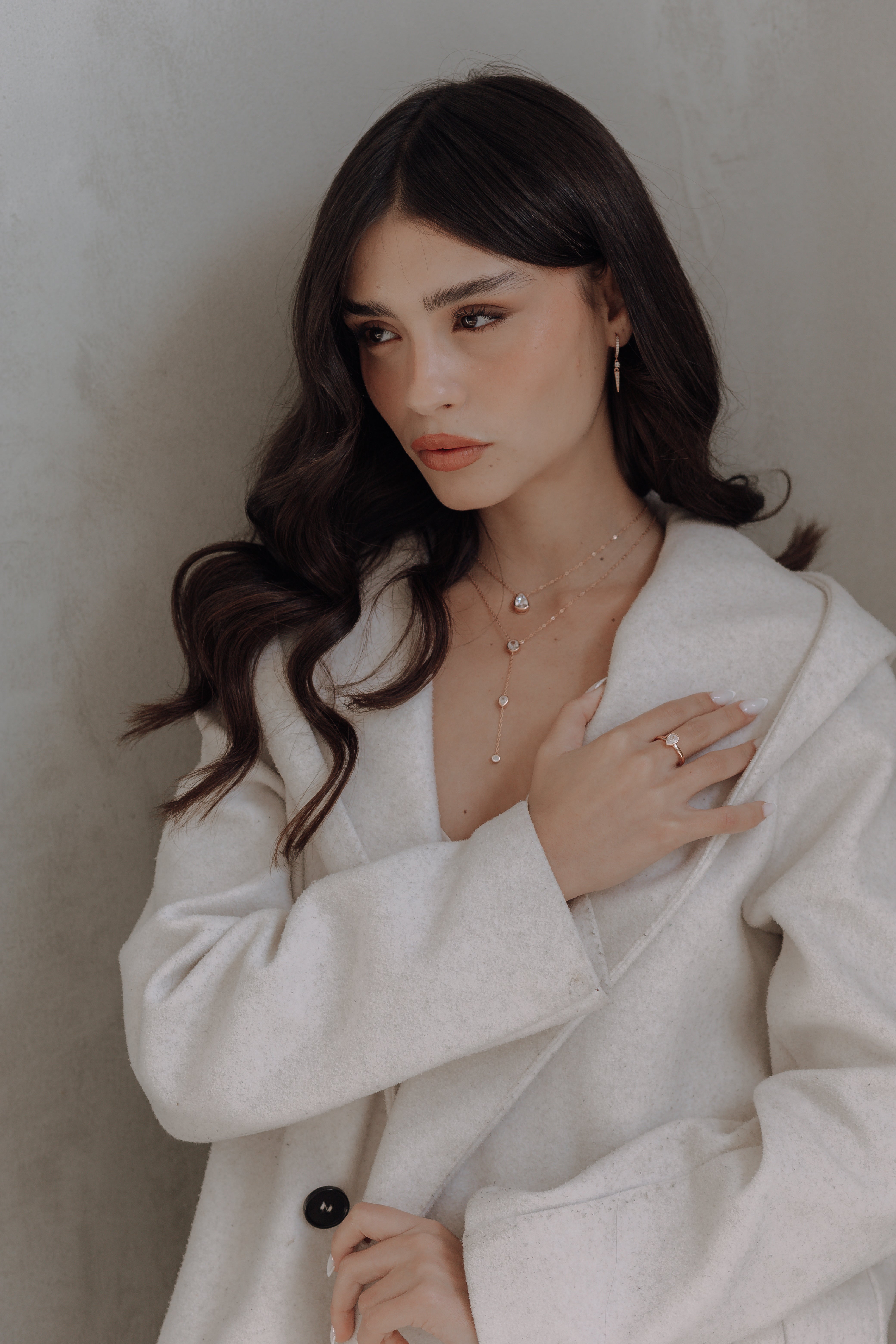 שרשרת נופלת עשוייה כסף אמיתי ומשובצים זרקונים